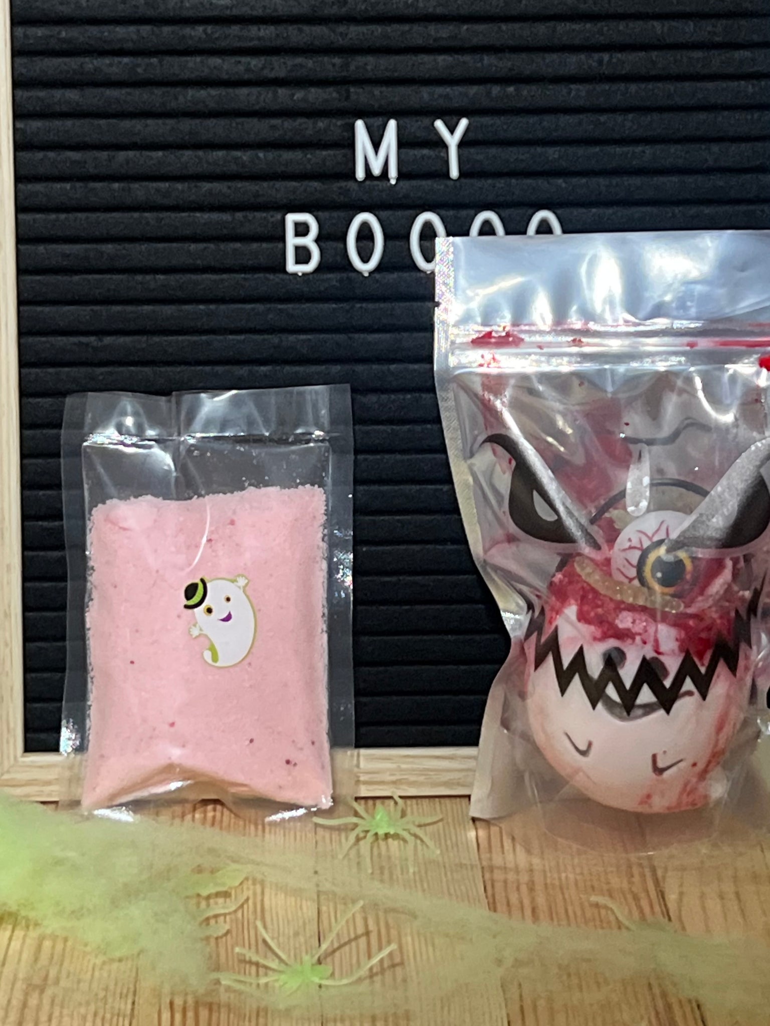 Sweet but a little sinister. My Boo drips with a crimson drizzle and smells like your favorite haunted café. As it fizzes away, warm notes of roasted coffee and cozy fall spices swirl through your tub. Perfect for chilly nights, spooky baths, and anyone who likes their scares served with a little sweetness. ☕🩸